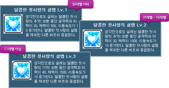 As always, the buff’s stats depend on your level! At level 71+, the Excitement of a Sweet First Love buff will give you 40 attack and magic attack, 1500 HP, and 10 speed for 30 minutes.