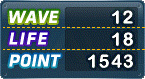 This is the new UI for Nett’s Pyramid. WAVE is the stage number, there are a total of 20 stages. LIFE is the Obelisk’s remaining life. LIFE goes down by one for each monster that reaches the left side. If your LIFE reaches 0, you fail the party quest. POINTs are acquired by defeating monsters! You can use your POINTs to buy buffs from Duarte.