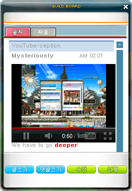 Now about the Guild BBS. It’s different in kMS than in GMS, our guild board is actually connected to the internet (which is why it lags everytime you open the guild window). I’m sure most of you have seen the video lately of the person watching YouTube in MapleStory. Well, it’s true! The Guild BBS allows all types of HTML now, so you can embed videos~ You can see formatted text as well!