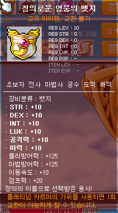 There’s also an amazing badge, called the Righteous Hero Badge, which gives 10 to all stats, 10 attack and magic attack, 125 defense and magic defense, 10 speed and 20 jump. It can be traded with the Platinum Karma Scissors. I’m almost sure this will be limited to maybe 1 or 2 people per server, like the Hero of Legend Badge or the I’m A Lucky Guy medal.