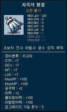 • Hell’s Fire (7 to all stats, 100 HP, MP, defense and magic defense, 2 attack and magic attack earrings, 5 slots, level 130, and untradeable)