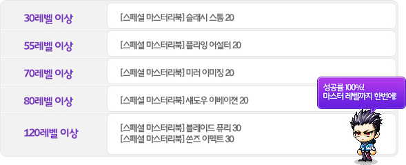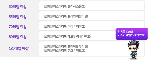 All Dual Bladers in the correct level ranges will receive free special mastery books! They have a 100% chance of passing!