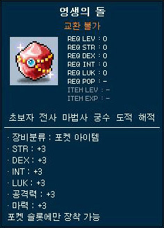 • Stone of Eternal Life (3 to all stats, 3 attack and magic attack Pocket item, untradeable)