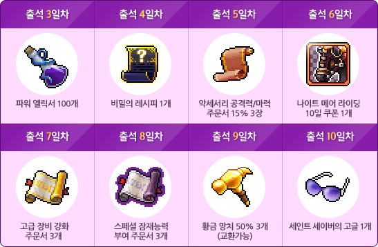 • 5 days: 3 15% Scrolls for Accessory for Attack/Magic Attack