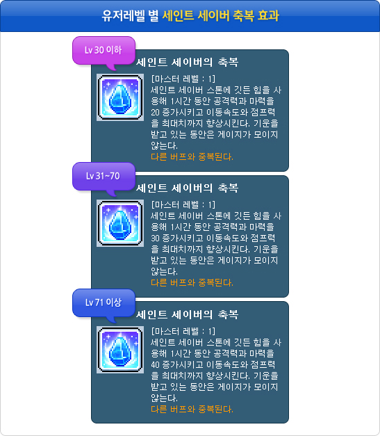 Each level range receives a different stat boost for 1 hour. For level 71 and over, you get 40 attack and magic attack, as well has maximum speed and jump!