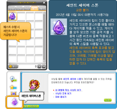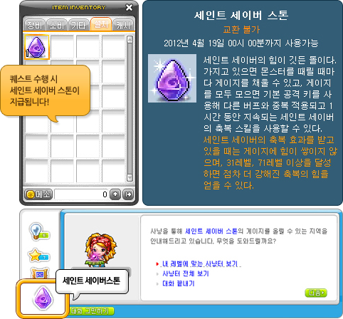 When you log in, you’ll see a special icon on your screen. Click on it to receive the Saint Savior Stone! It lets you purify monsters, and Cassandra will tell you which maps you can do that in.
