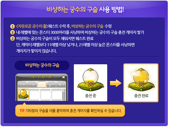 To archers who job advance during this event, they’ll receive prizes! At 2nd job advancement, the Free Archer’s Earrings, which give 3 to all stats and 1 attack. At 3rd, they’ll get a 70% Two-handed Weapon for Attack Scroll, which gives 1 str and dex, 2 attack, and 10 accuracy. At 4th, they’ll get a Special Mastery Book!