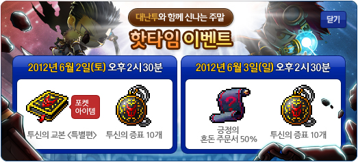 To celebrate, there will be two Hot Times! The first on June 2 gives a Gallant Manual <Special> (1 to all stats, 1 attack and magic attack, 7 PVP attack) and 10 Gallant Emblems. The one on June 3 gives a 50% Positive Chaos Scroll and 10 Gallant Emblems.