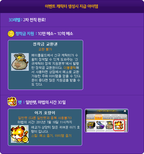 That’s not all, any Resistance created during this event will receive a gold bag, that when opened, will give a random coin that can be NPCed for money. The coin can be worth from a mere 100k to a whopping 1 billion mesos! You’ll also get a free Baby Tiger pet that expires in 30 days.