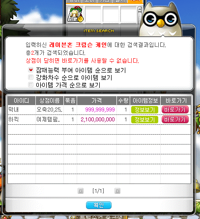 You can now change your shop title without having to close it! Also, when using the Owl of Minerva, you can now search for items with potential, arrange by the number of stars on an item or by cheapest price.