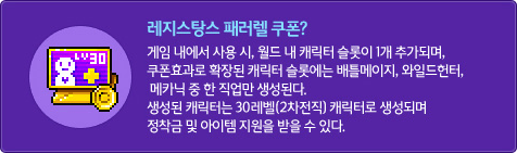 After that, you will receive a popup that gives you the Resistance Parallel Coupon! This coupon allows you to create a level 30 Resistance right off the bat! It gives you the character slot for this new Resistance as well~ Then you must go to your coupons on the homepage and redeem this Coupon.