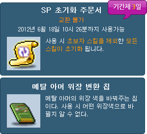 All Battle Mages, Wild Hunters, and Mechanics will receive a 3 day Sp Reset Scroll when they log in. Mechanics will also receive a Metal Armor Conversion Chip. They can use this chip after completing the <Secret of the Metal Armor> quest to randomly change the colour of their metal armor.