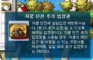 Also, the Zakum Dungeon Additional Entry Coupon has been added to the Cash Shop, along with one for Horntail. You can use these coupons to enter Zakum’s Altar or the Cave of Life more than the alotted 2 per day. However, you can only use 5 Additional Entry Coupons per day.