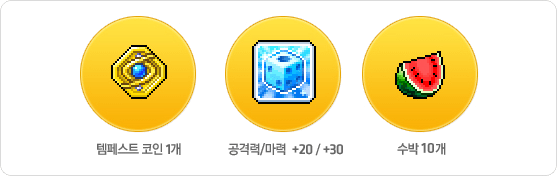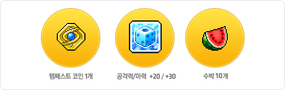 - 8/5 Hot Time: 50% Positive Chaos Scroll, 20 Tempest Coins, Special Additional Potential Stamp, 100k Maple Points (10 per world)