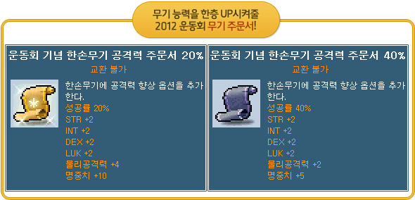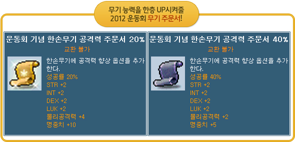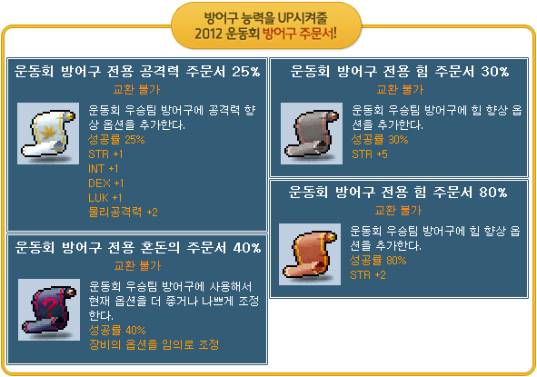 Wonky also sells scrolls that can be used only on the Sports Meet Equipment, such as Armor for Attack scrolls, Armor for stat scrolls, and Chaos Scrolls.
