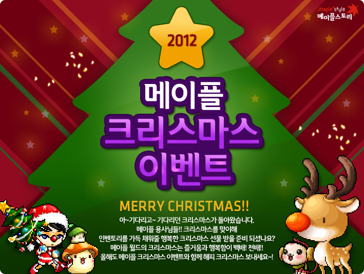 Each day when you login, you’ll receive one of 4 free Christmas costumes~ These items are Cash equipment and will give you 5 charm when you equip them.