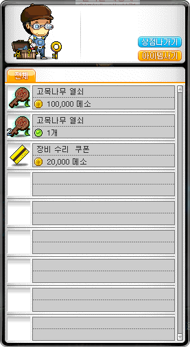 There’s also one more shop where you can buy Old Tree Keys. The last item is a Equipment Repair Coupon, which instantly repairs an item (durability? Although there’s like no more equips with that…).