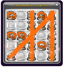 Use the statues collected above to fill up Cassandra’s collection! You’ll get prizes for every horizontal, vertical, and diagonal line you make.
