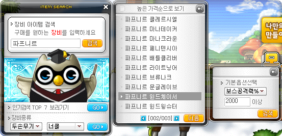 There was a new Cash item added, called the Owl of Tote. You can only search for equipment with it, but the plus side is that you can choose to specify a certain stat that you would like it to have.