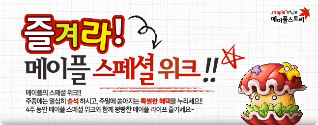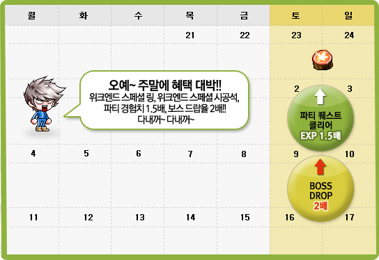 Finally this event brings the Maple Special Weekend! Every weekend, you’ll get a free Teleport Rock, 1.5x experience on party quest clears, and 2x drop on bosses!