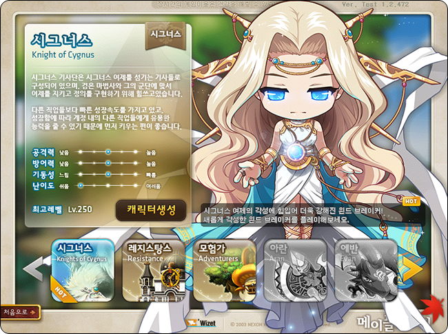Note: all character creation has been restricted except for Adventurers, Knights of Cygnus, and Resistance.