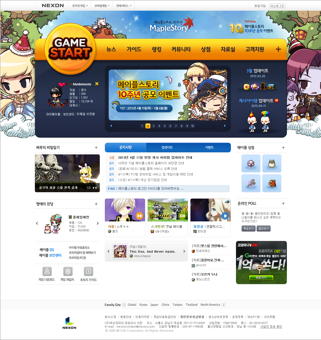 Oh yeah, today the MapleStory homepage updated its design because of the upcoming 10th anniversary! I think it looks really nice, way better than before, haha.