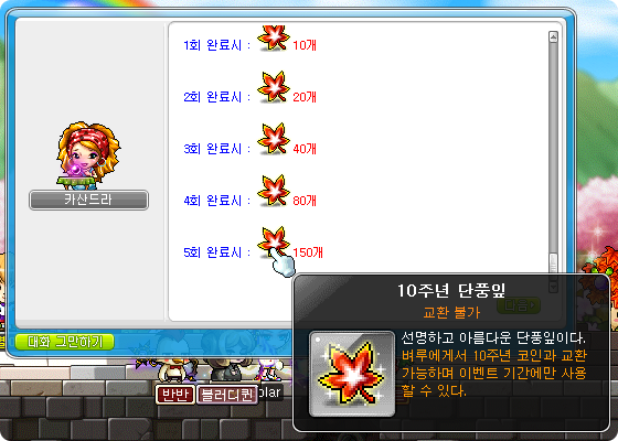 You can trade in 100 Maple Leaves for 1 10th Anniversary Coin. They actually included Safety and Protect Scrolls in this shop, that’s new!