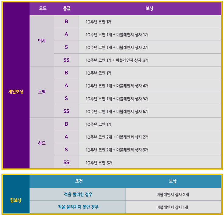 Based on both your difficulty and rank, you will gain a certain number of 10th Anniversary Coins and Mesoranger Boxes. You’ll also get 2 extra boxes if your team managed to win and an extra 1 if you didn’t.