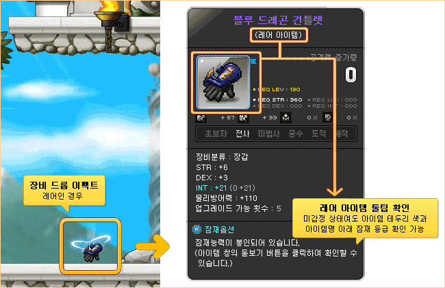 When defeated, Elite Monsters will drop enhanced rewards of the monster it was, and if its level 110 or higher, it will also drop Rare~Epic equipment, Cubes and Flames of Reincarnation, Golden Hammers, or Protection Scrolls.
