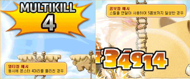 Combo Kill and Multi Kill systems have been added. When you kill 3 or more monsters in one skill, it counts as a Multi Kill, and when you kill many monsters in a row, it counts as Combo Kills. Based on your Multi Kill and Combo Kill streaks, you’ll receive bonus experience from monsters.