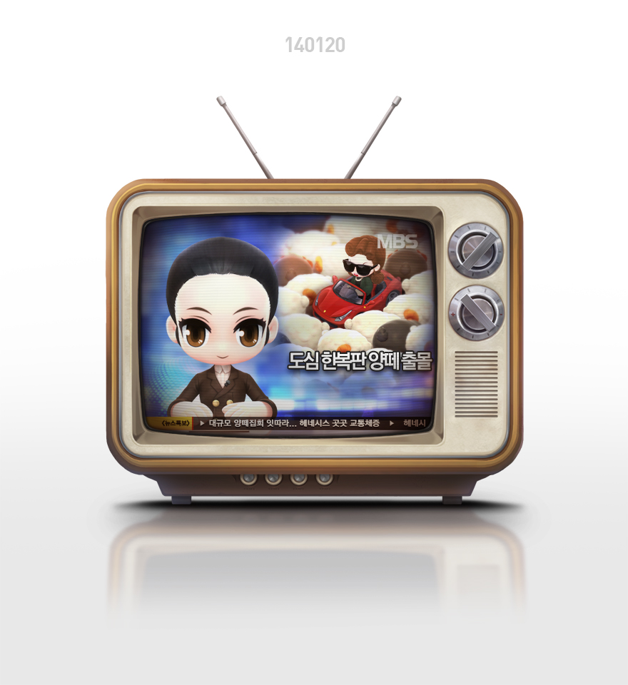 Let’s move on to MapleStory 2! This one is a broadcast from the MBS saying that the center of the town Henesys has been infested by sheep and they’re causing a lot of traffic, haha.