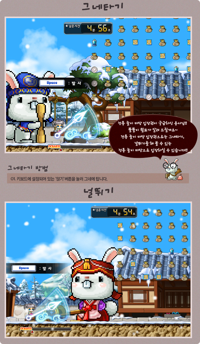 The Traditional Game Courtyard consists of 2 maps, and you’ll be randomly sent to one of them when you use the ticket. Basically, you’ll have to aim yourself and set the power of either the swing or seesaw in order to get the maximum number of prizes!