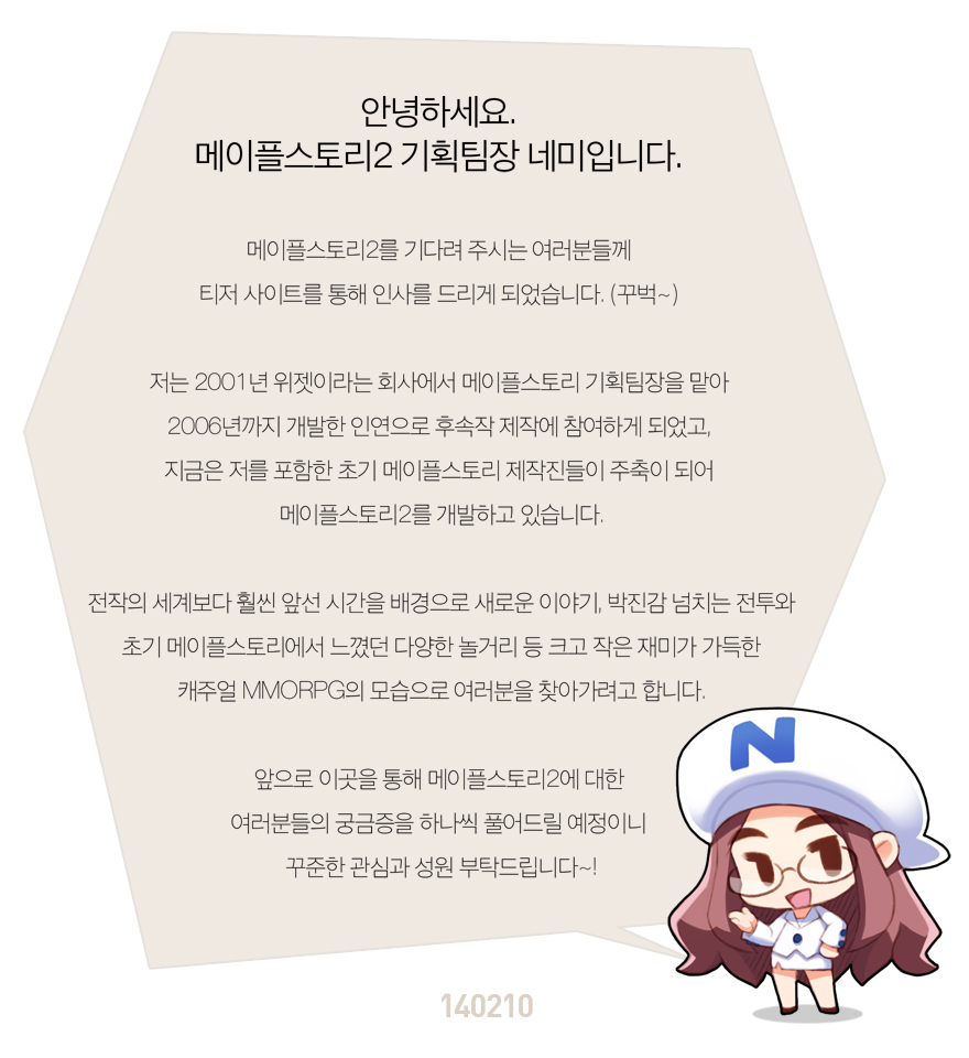 Hi, I’m Nemi from the MapleStory 2 planning team. I hope you aren’t bored waiting for MapleStory 2 with the teaser site.
