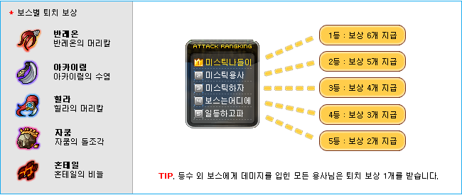 Based on the damage you have done, you might appear on the Attack Ranking! Your place will determine the amount of boss items you’ll get. First place gets 6, second place gets 5, third place gets 4, fourth place gets 3, fifth place gets 2, and everyone else will get 1.