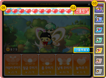 If you get 10 hearts in one day, you can also get a special gift from your butterfly.