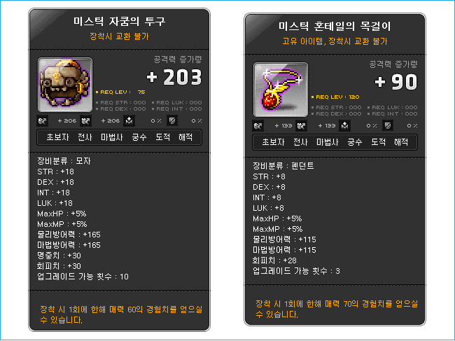 As you might have noticed, there are two new items, the Mystic Zakum Helmet (18 all stats, 5% HP and MP, 10 slots, tradeable until equipped) and the Mystic Horntail Pendant (8 all stats, 5% HP and MP, 3 slots, tradeable until equipped). Both items can be traded after being equipped by using the Silver Karma Scissors.
