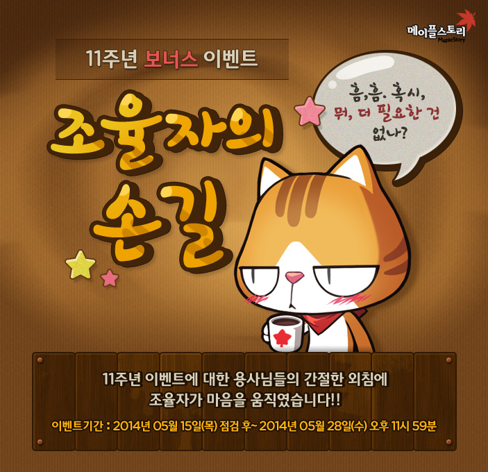 Until May 28, there’s an event where you can get 150 11th Anniversary Coins if you complete the new Mushroom Castle quests (once per Maple ID).