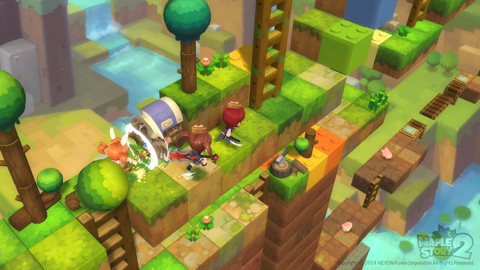 There will be PvP in MapleStory 2. You can pick up and use objects in the map as weapons!