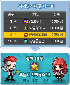 Every day at 12am, the Shining Star contest will close and a winner will be chosen based on the rankings. You must be in the top 20 of STAR POINTs and the top 3 of each of the minigames. The Shining Star will enjoy various benefits until 12am of the next day, when another Shining Star is chosen.