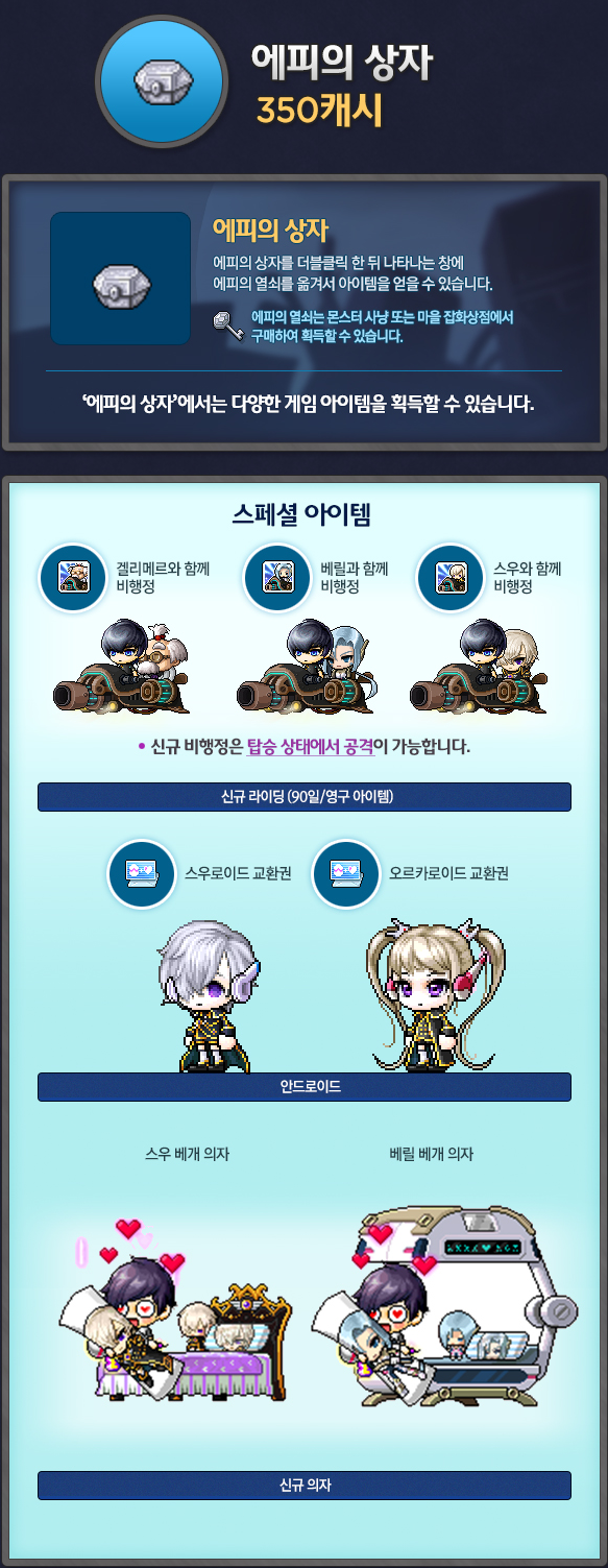 In the Cash Shop, the Black Heaven pet package has returned, featuring Petite Suu, Wounded Orca, and Gelimer! You can also buy their packages separately for 9,900 NX.