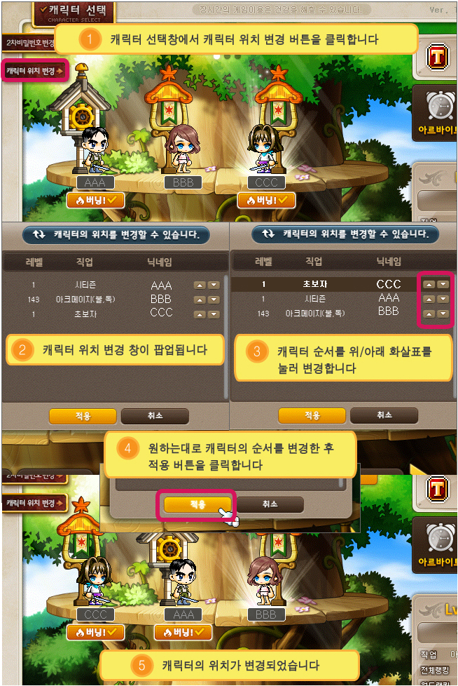 With the new character position change button, you can move all of your characters around, just press the button and use the arrows to change the order, and watch as your characters are moved instantly.