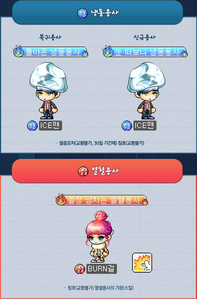 Frozen Warriors receive a special title and hat (which expires in 30 days), while Burning Warriors receive their own special title and the Burning Warrior’s Aura skill.