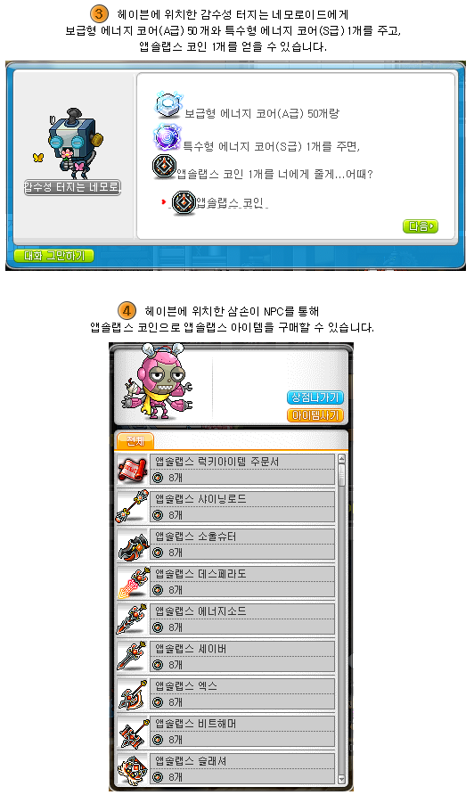You can trade in 50 A-rank Cores or 1 S-rank Core for 1 Absolabs Coin, which you can use to buy Absolabs weapons (8 coins, including the Zero scroll), shoes (3 coins), or capes (3 coins).