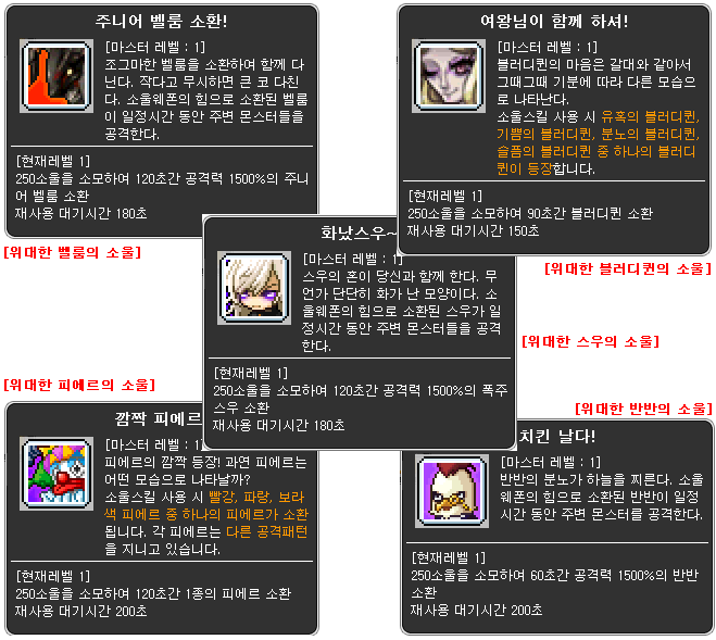 If you’re lucky enough to get a Magnificent Soul, you’ll get a stronger skill. Now, all 5 Souls are summon-types. For Pierre, you’ll summon one of three colours of Pierre and for Vellum, you’ll summon Junior Vellum.