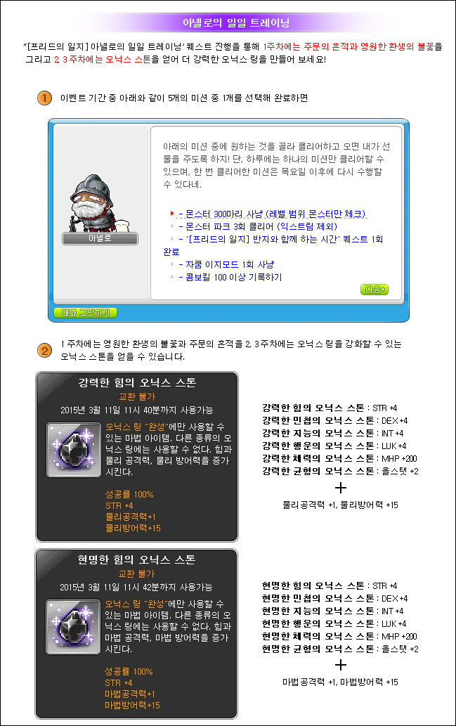 There are also a bunch of side quests you can do while this event is going on. The first is Time with the Onyx Ring, which requires you to hold an item for 30 minutes. After completing this, you can choose one of three buffs: one that gives 1.5x experience, one that gives 30 attack, or one that gives 30 magic attack, all lasting 30 minutes.