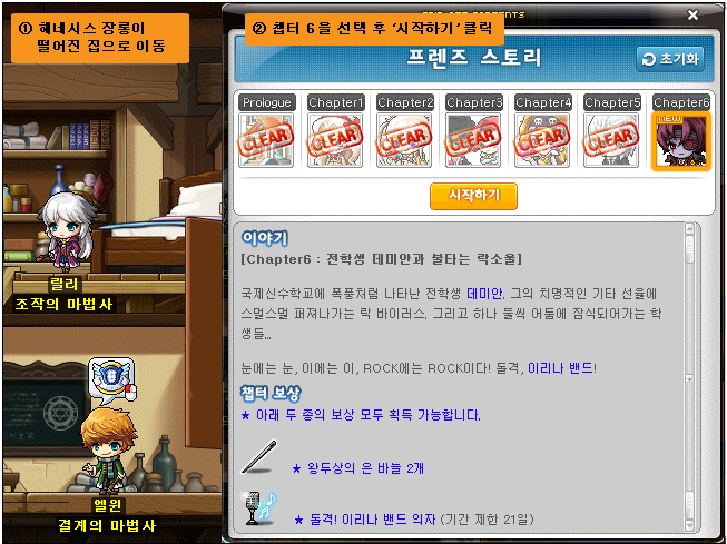 The 6th chapter of Friends Story, New Student Demian and the Burning Rock Soul has been released. You can go to the wardrobe in Henesys to access it. It can only be started once you have finished the first 5 chapters.