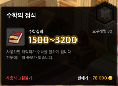 The Essence of Mathematics item has been added. If used, your character will become good at math. This has no use in battle.