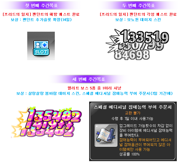 • 3rd Week: Spring Breeze Damage Skin, Special Additional Potential Scroll