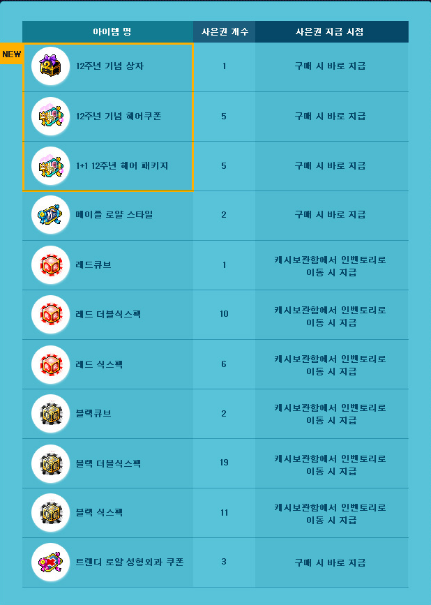 The 12th Anniversary Celebration Hair Coupon has been added and will be sold until May 14. It costs 5,500 Cash for two coupons.