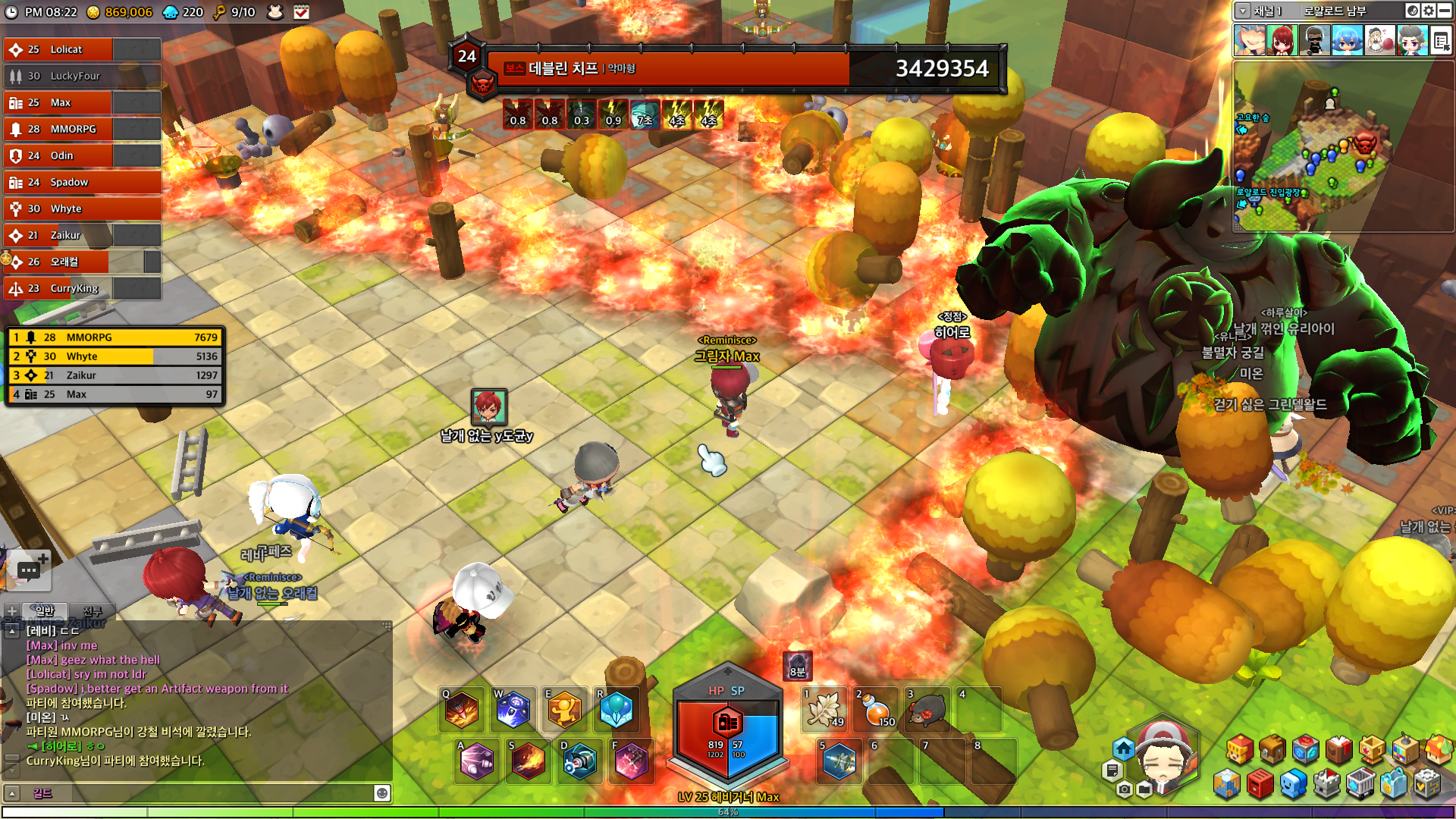 The bosses in MapleStory 2 are hardcore! They definitely require a lot of people to work together to fight them! My Heavy Gunner was fairly squishy and I had to work extra hard to dodge attacks, otherwise I would get two-shotted. You need to figure out a boss’ attack patterns to fight them well. For example, there’s a turtle boss that… poops all over the island he spawns on and it does SO MUCH DAMAGE if you stand in it.